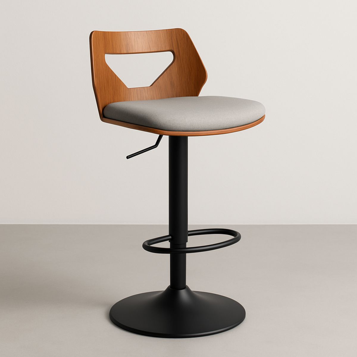 Cadeira Giratória de Madeira e Metal com Assento Cinza