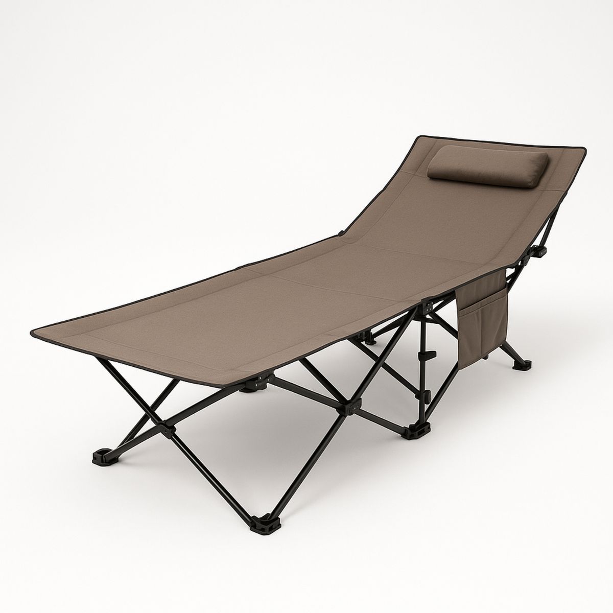 Design: Estrutura dobrável com encosto ajustável e travesseiro removível.